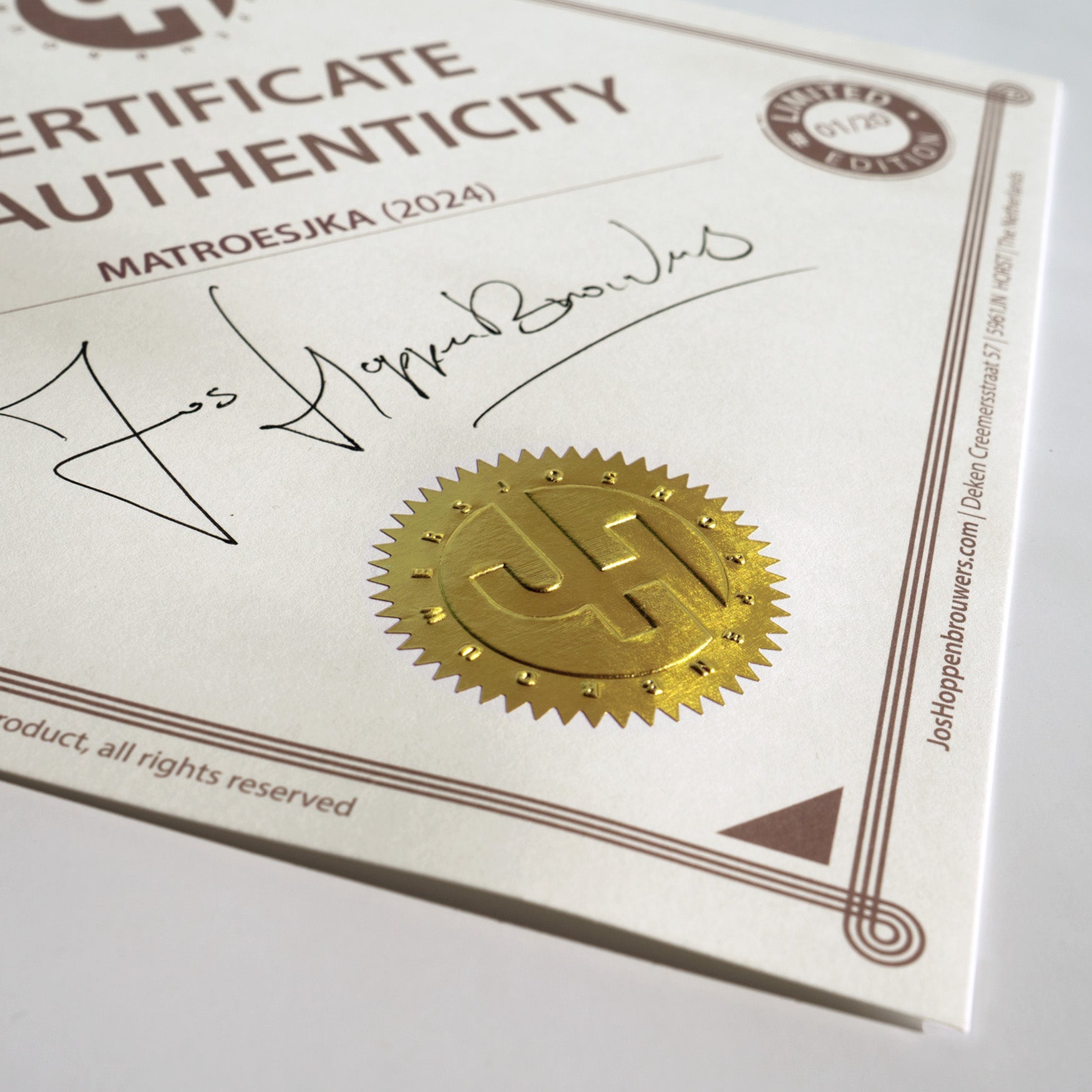 - Signed, numbered and embossed